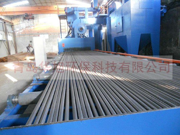 鋼筋拋丸清理機主要用于鋼筋、線材、圓鋼、棒材去除掉其上的銹層、焊渣及氧化皮,使之獲得均勻一致的金屬光澤,以提高鋼材的涂飾質(zhì)量與防腐效果。在鋼筋線材及制品行業(yè)已引起足夠的重視,被認為是取代酸洗最值得信賴的技術(shù)。